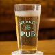 Coola personlig ölglas för din hempub eller pub med ditt namn i böjt brev ovanför ölglasögonklickning, det år då din pub upprättades och PUB i vitt brev med en skugga som gör att grönten dyker upp. En underbar gåva till mannen i ditt liv som har en hempub eller pub.