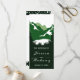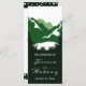 Grönt bergen och träd-ceremonin och bröllopsprogrammet i party. En elegant bröllop-design med ett bergsområde genom barrträd och namn i handskriven stil. På baksidan finns mörk grönt och vitt gräns med vit polka dots på ovansidan och grund på kortet.