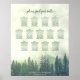 Detta 13 bord-bröllop-sätesdiagram har en strålande utformning med en dimmig eller midig bergssida täckt i grönt gräs träd. Rubriken lyder "hitta bord" i elegantens äldre skriptkalligrafi. Det finns utrymme för namn på paret och bröllop-datumet. Diagrammet har bord-uppdrag för 130 gäster - 10 personer per bord. Perfekt för ett utomhus- eller bergsdestinationsbröllop.