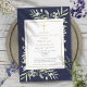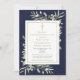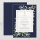 En elegant personlig inbjudan till minnesfirande med botaniska akvarell gröna blad på en marinblå bakgrund. Designad av Thisisnotme©