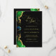 Stunning och elegant bröllop sparar datumkortet av internationell artist Pauline Benjes. Guld accineras med rik juveltoner i virvelströmmar av flytande färg. Luxuriös metallisk guldbrons med intrikat jewelliknande flytande emerald agate design. Sitta är en enkel redigeringsmall som du kan lägga till information om i bröllop. Grönt Black Guld Bröllop spara datum. Formella bröllopsinbjudningar och utskickstillbehör. Ursprungliga inbjudningar till bläck art-bröllop med abstrakt.