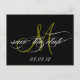 Personlig Grönt Monogram Spara datumvykorten med vit finare sparar datumskriptet på svart bakgrund. Anpassa med ditt första monogram, bröllop-datum och all information om bröllop-datum på baksidan av detta elegant bröllop-meddelande. Elke Clarke©