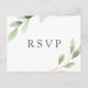 Detta bröllops-svarskort med målade akvarellblad i olika nyanser av grönt.