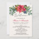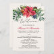 Vinterbröllop. Bröllopsprogram - denna design har en akvarell julstjärna med en komposition av mistel, tallkvist, kotte, bär och bjällror. Bakgrundsfärgen (fram- och baksida) kan ändras.