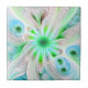 Grönt + Blått Abstrakt Fractal Flower Ceramic Tile Kakelplatta