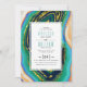 Grönt, blått och persikoaktigt segment med guld-folie är en modern geode sommarbröllopsinbjudan. Ett modernt och elegant bröllop-format med en bit agat och ett vitt ram med er formulering.