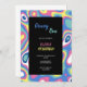 grönt,blått,rosa och gult födelsedag - inbjudan Groovy One! Retro inspirerade till 1:a födelsedagsinbjudan med 70:s stil typsnitt och färg, Blommigt i smart rosa och lila färg.