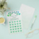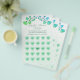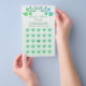 Möhippa Bingo-kort med delikat grönt Ombre-bakgrund, grönt-hjärtan för de utrymmen som ska skriva in och en stjälk av korskorsade blommor av grönt
