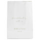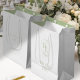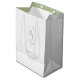 De här vackra vita bröllopsbärkassarna har paret initialer monogrammat och ramat med en mjuk grönt blommigt gräns och "tack" text längst fram, mot en vit bakgrund. I baksidan finns valfritt textområde, namn och datum. Den inre översta gräns har också samma mjuka grönt färg och skapar en elegant för chic med ungdomlig dragningskraft.