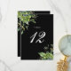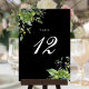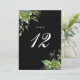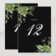 Dessa eleganta botaniska gröna blomsterbröllop bordskort kan anpassas med chic typografi på en svart bakgrund. Kortet är tryckt på fram- och baksidan (dubbelhäftad). Designad av Thisisnotme