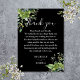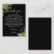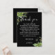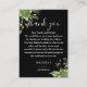 Ett elegant tackkort för bröllopsmottagning med eukalyptus, grönt och botaniskt tema i svart och vitt, personligt anpassat med ett speciellt meddelande och brudens och brudgummens namn. Designad av Thisisnotme©