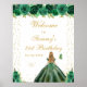 Den här eleganten och den glamorösa födelsedagsfestens välkomstskylt har en vacker prinsessa med blondint hår och rättvis hud i en grönt boll-gryna. Texten kombinerar handskript och modernt sans serif typsnitt för ett klassligt och sofistikerat utseende. Blommigten, fjärilarna och guld-konetti skapar perfekten blandning av rustik och chic. Grafik efter www.etsy.com/uk/shop/SunflowerDayLove