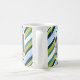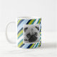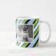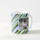 Cute personlig-foto mugg med trendigets grönt, blå och vit rand mönster-bakgrund. Lägg till din egen personliga beröring till en mugg genom att lägga till foton av dina barn, husdjur och andra familjemedlemmar.