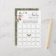 Grönt Boho Baby Bingo-spel. Gör presentöppningen ännu mer roligt med Boho Butterfly Baby Bingo, ett charmerande tillskott till dina babyduschspel. Framsidan har ett skript för grönt av elegant som skapar ett vackert sammanhängande utseende, medan gästerna fyller i sina bingo-kort när presenter är omslaget. Baksidan visar en koordinerande mönster av boho butterflies, vintage av vilda blommor, torkade gräs och mjuk grönt blad på en sage grönt bakgrund, som ger en sofistikerad och vismisk beröring. Designat i varma örhänta toner av tan, brun, rost, terrakotta, bränd orange och grönt för mutad spage, är detta spel perfekt för alla vår, sommar, fall eller vinterbabyduschar. Behålla dina gäster engagerade och underhållna med ett spel som blandar roligt utan stil!