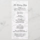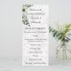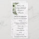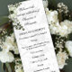 Det här fina bröllopsprogrammet i Ceremony har ett charmerande biotema som är blandat med ett klassiskt, vintage-inspirerat utseende. Den har en fantastisk bärekrans av grönt med blommor i hörnet för en fin rustik beröring, med ett vackert dammmönster i bakgrunden i mjuka nyanser av grått och vitt. Det finns mer utrymme på baksidan för ytterligare detaljer, eftersom det bara innehåller fuktmönstret utan andedräkten.
