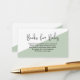 Bokar för Baby könskort - Fyll Baby Bibliotek med Kärlek: Uppmuntra kärlek att läsa höger från början med denna charmerande grönt och vita Bokar för Baby-kort. Perfekten utöver dina inbjudningar till babyduschen innehåller det här kortet en trevlig rytm som vänligt ber gästerna att ta med sig ett bok i stället för ett kort, och skapar en tänkvärd och varaktig gåva till din lilla. Varningsrytmen lyder: "En speciell begäran som inte kommer att bli för svår: Ta med ett bok i stället för ett kort. Välälskad eller helt ny, det gör det också! Men var snäll och känn dig inte skyldig, vi lämnar upp det till dig." Denna trevliga och milda inbjudan säger till gästerna att deras närvaro är det som verkligen betyder något, och varje bidrag, både gammalt och nytt, kommer att omhuldas. Temat "Bokar för Baby" tillför lite kreativitet och upphetsning till din babydusch och skapar det ett minnesvärt tillfälle för alla inblandade. Kortets utformning i gender och neutralt är perfekt för alla babyduschar, oavsett om du förundrar genderna eller firar ett tema i gender-neutralt. Neutralt färg bokar illustration och modern typografi skapar ett charmerande och tidlöst utseende som kommer att stämma överens med alla era gäster. Anpassa texten på kortet så att den återspeglar din personliga beröring och dina inställningar. Oavsett om du väljer att behålla den ursprungliga ordalydelsen eller lägga till ditt unika budskap är känslan bakom kortet fortfarande hjärtskärande och inbjudande. Begreppet "Bokar för Baby" fyller inte bara baby bibliotek med omhuldade historier utan främjar också kärlek för att läsa och lära sig från unga år. Det är ett underbart sätt att bygga en samling litteratur som kommer att åtfölja din lilla när de växer och ger sig på oräkneliga äventyr genom bokar. När du förbereder dig för ditt lilla kort är grönten "Bokar för Baby" diagonalt och vitt kort ett hjärtstillande och ett kreativ som du kan använda som komplement till dina inbjudningar att duscha barn. Det är ett steg för ett firande fyllt med kärlek, glädje och löftet om vackra historier som kommer att vara hela livet.