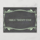 Elegant och trendig Flourish Chalkboard-vykort med Bordsnummer som har en krita och en finare-snurrare och löv art deco gräns i myntgrönt. Enkel att anpassa, lägg helt enkelt till rätt bordsnummer i den text fält tillhandahåller. Klicka på Anpassa om du vill söka efter fler anpassningsalternativ.