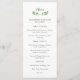 Elegantens botaniska bröllop-menykortsdesign har en grönt med löv, på en vit bakgrund. Vi har använt konst från LABF-skapelser.