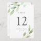 Detta Bordskort för Bröllop har målade akvarellblad i olika nyanser av grönt.