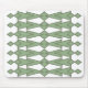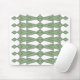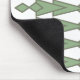Den här musknappen har en konsdeco-design av trianglar och diamanter som ser ut som tarmar i ljust grönt grönt och sage.