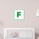 Grönt brev F-alfabet på vit bakgrund med grönt gräns. Hjälp din lilla att lära sig alfabetet med den här brev F-designen.