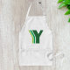 En grönt brev y i versaler. Den här designen ser ut att vara verkligen för dessa Apron