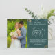 Det här bröllop-fotot-tacket som du har med ett platt grönt-kort har ett vackert foto av bröllop från bruden och brudgummen. De är båda klädda i sin bröllop-attityd och leende när de tittar på varandra. Insidan av kortet är tom och kan anpassas med ett personlig-meddelande. Med enkel mall kan du lägga till ditt foto och information till det här kortet.
