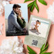 Ange tonen för bröllop med den här eleganten, spara datumkortet med den moderna grönten. Det är perfekt för ett målbröllop på chicen. Med det botaniska handflatan-löven får du en ny snyggt, medan den enkla fotomallen fångar din romantiska vibe. Komplett med en skannerbar QR-kod för enkel gäståtkomst. Den här utformningen av klass och snyggt är perfekt för ett badbröllop.