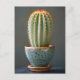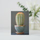 Grönt Cactus in a Teal Ceramic Pot Photography Vykort
