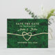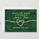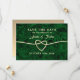 Enkelt, elegant, guld foliehjärta i kombination med boho abstrakt framträder gröntens bakgrund. En bra, minimalistisk, modern kalligrafi Bröllop spara datum-inbjudan.