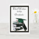 Grattis student-kort. Grönt och diplom på skorsten i bokar.