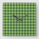 Grönt Checker Diamond Mönster Fyrkantig Klocka