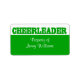 redot Underbar snickaretikett som du vill anpassa med din egen text. CHEERLEADER sitter i fet grönt mot vit bakgrund ovanför en solid grönt fält. Underbar för att märka egendom för skoltid eller när man är borta i lägret. Mer färg finns på Dizzy Debbie.