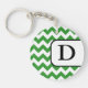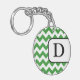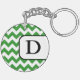 Acrylic 2-sided round monogram-nyckelkedja med grönt och vit chevron zigzag mönster och personlig med ditt initiala.