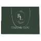 Chic och elegant med ungdomlig appell från trendiget. De här vackra bröllopsbärkassarna i mörkens grönt, har paret initialer monogrammat och ramat med en blommigt gräns och "tack" text längst fram. I baksidan finns valfritt textområde, namn och datum.