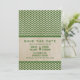 Modern med en vintage twist är Chicen Chevron Spara datum meddelande. Den här utformningen har en antik papper bakgrund och en zigzag chevron mönster mörk grönt. Enkel att anpassa, lägg bara till information om bröllop. Klicka på Anpassa om du vill söka efter fler anpassningsalternativ.
