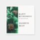 Dessa eleganta smaragdgröna och gyllene blommiga lyckliga pensionspappersservetter kan anpassas med din information i modern typografi. Designad av Thisisnotme©