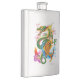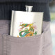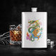 En grönt kinesisk drake med en orange koi-fisk med lotus blommor och körsbärs-blommar mot en mörk blått bakgrund.