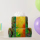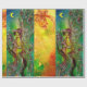 Vitaktig, färglös vattenfärgad målning med gyllene och silver-folie i gult, grönt, rött färg.