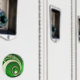 Grönt, rund trappväg, som fångats i en skola i Zürich i Schweiz.