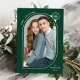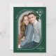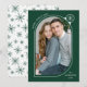 Skicka helgdag till familj och vänner med ett unikt helgdag av Late Bloom Paperie! Det moderna helgdag visningar ditt foto inuti en grönt och ett vitt böjt foto ram som är förskönat med en vit snöflinga. Anpassa framsidan av fotojulkortet genom att lägga till en hälsning med kurvtext stil, namn och år. Kortet återgår till visning en grönt snöflinga mönster.