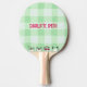 Cute Ping Pong Paddle för barn med mangaliknande karikatyrgrodor på en grönt gingham mönster med ett alternativ som kan anpassas till Namn.