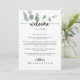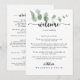 Denna grönt gläder oss över att eukalyptus bröllop välkomnar brev är perfekt för ett enkelt bröllop. Konstruktionen har vattenfärgad handdragen elegant botaniskt eukalyptus grenar och löv. Anpassa fronten med ett välkomstmeddelande till dina gäster och till namn. Anpassa baksidan med schemat för händelser och annan användbar information.