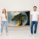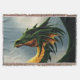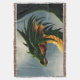 Porträtt-profil för en grönt drake. Blå himmel bakom draken