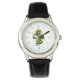 Titta med en illustration av söt liten grönt och gyllene drake som flyger och håller ett drakägg, fantasi design för barn