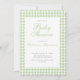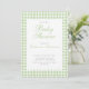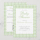 En söt och elegant dubbelsidig inbjudan till en könsneutral baby shower med en sagegrön gingham med skulpterad kant. Baksidan har utrymme för information om barnpresentregister och andra evenemang på festen. Lägg till webbplatsen i QR-koden för att anpassa den skannbara delen av inbjudan för dina gäster. Perfekt för en elegant baby shower för att välkomna din nya bebis.