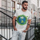 En grönt jordglob med gröntar runt den. Den här designen ser ut att gälla i Manar T-Shirt
