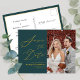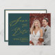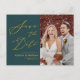 Grönt Elegant Guld Skriver Modern Photo Minimalist Bröllop spara datum annons Postcard. Låt er familj, vänner och kolleger veta att ni har fastställt ett datum för ert bröllop firande med detta elegant, snyggt och det moderna bröllop spara datum-inbjudan. Alla texterna är i förväg ordnade så att du enkelt och snabbt kan anpassa dig med dina egna detaljer.
