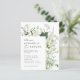 Budgeterat naturligt bohemiskt botaniskt modernt bröllopskort för snyggt av lövlöv i elegant. Vackra handtryckta vattenfärger i botaniska blommigtar och manustext. Modern trendutformning.