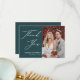 Grönt Elegant Skript Modern fotoenkel Bröllop Tack Kort